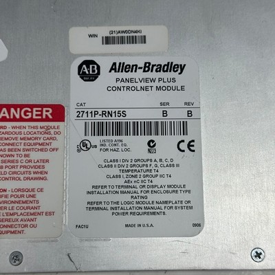 Allen Bradley 2711P-RN15S SER. B PanelView Plus ControlNet Module PLC HMI