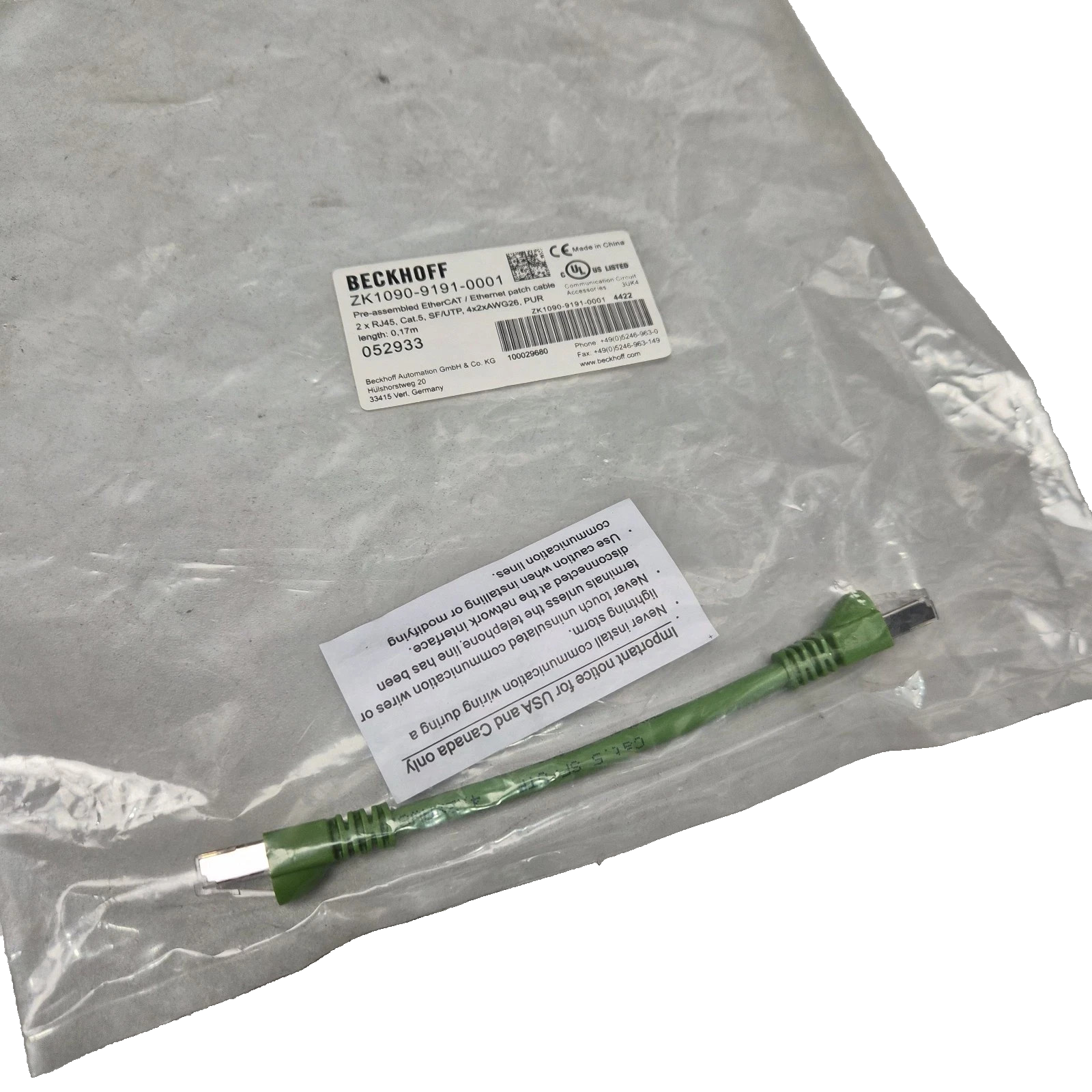 Beckhoff ZK1090-9191-0001 EtherCat Cable