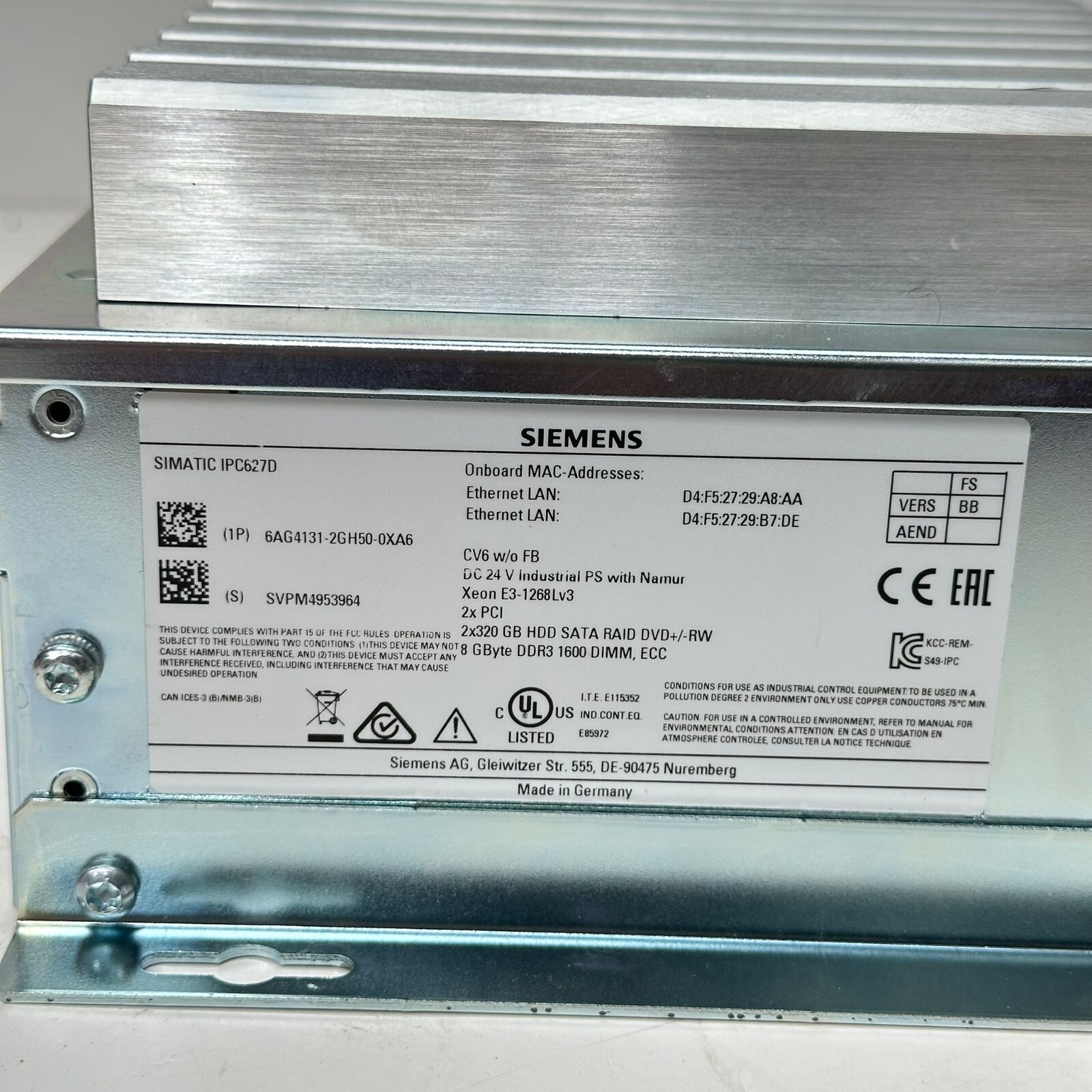 SIEMENS 6AG4131-2GH50-0XA6 SIMATICS BOX PC IPC 6AG4 131-2GH50-0XA6